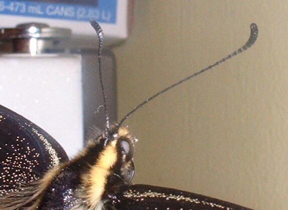 More of a side view. The coiled proboscis is partially visible, too. This guy got too antsy to get any more pictures...he wanted OUT!