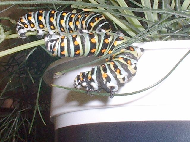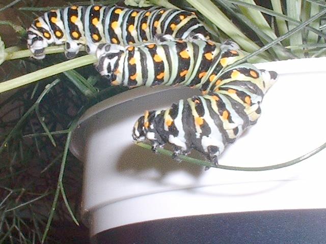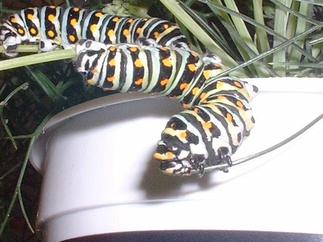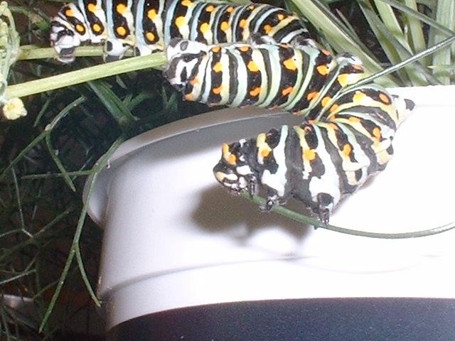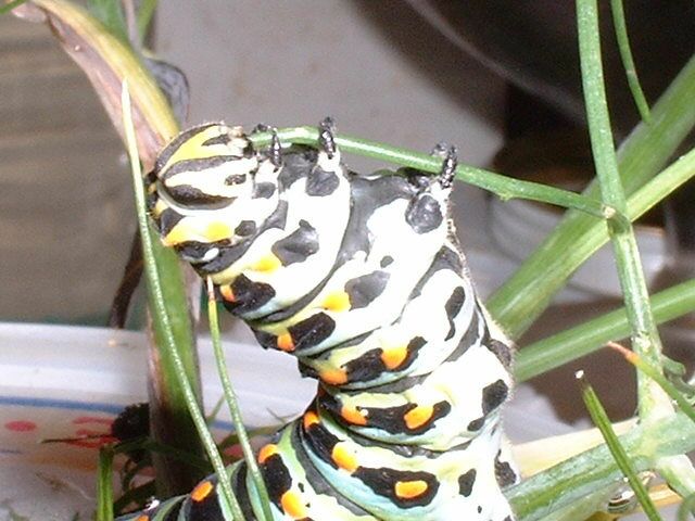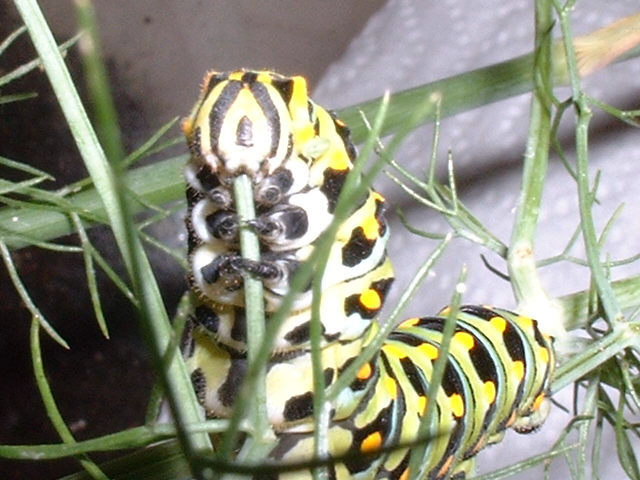 Making short work of it. Sometimes you have to wonder if these guys even take the time to chew! Actually, they don't chew at all. They just slice off chunks. No molars. Just incisors--or the caterpillar equivalent: mandibles