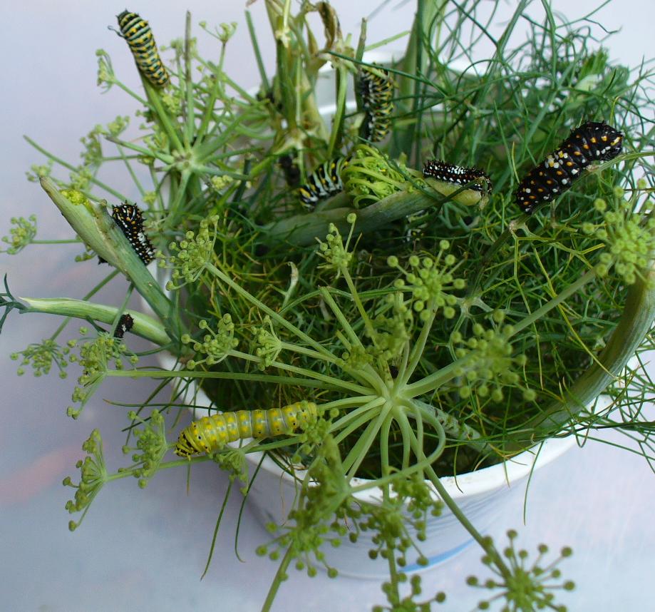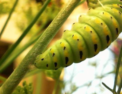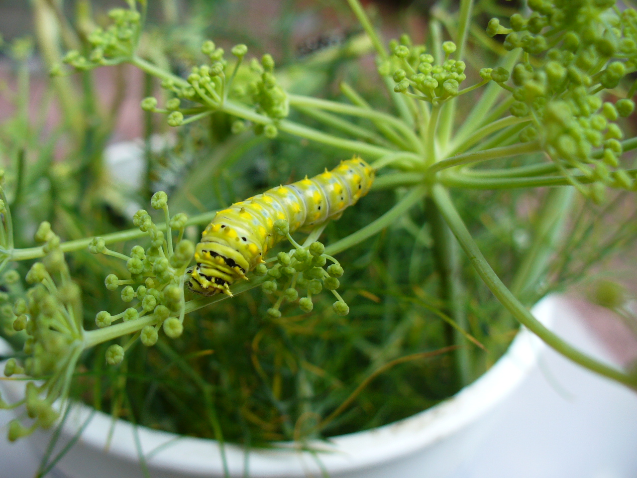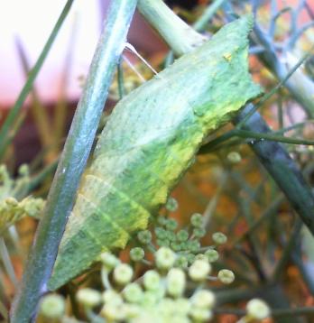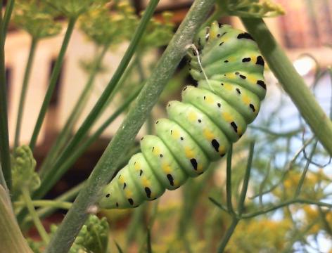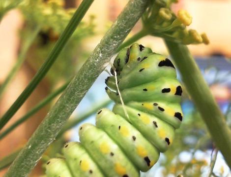 No roaming! Surprise--this lazy fellow decided to just attach him/herself to a fennel stem and be done with it.