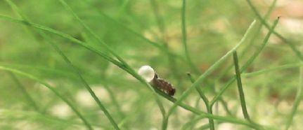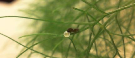 The same caterpillar is shown below continuing to enlarge the hole. The eggshell flexes as the caterpillar moves. The video lasts about 8 minutes, and starting at about 4:47 the caterpillar starts to crawl out and onto the fennel stem. A very cute little guy, and about 3mm long. Best viewed with full screen.