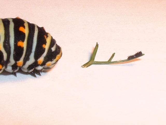 For scale, below are webcam pics of another newly-emerged caterpillar. He is pointed away