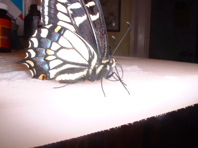 A little later, and the wings are now mostly inflated, and still putzing with the proboscis.