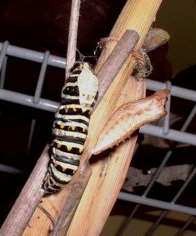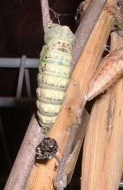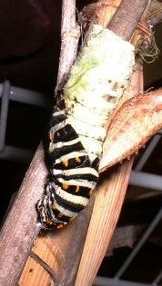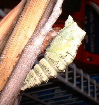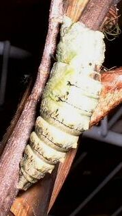 The photo below shows the pupa about 10 minutes after shedding...the "horns" at the top are starting to be more prominent.